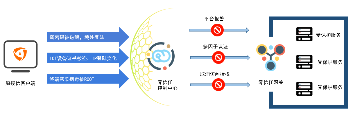 云涌零信任可以保護(hù)邊緣計(jì)算設(shè)備的身份安全與數(shù)據(jù)安全,使每個(gè)邊緣網(wǎng)關(guān)成為獨(dú)立的安全區(qū)段,網(wǎng)關(guān)內(nèi)業(yè)務(wù)服務(wù)受零信任平臺(tái)保護(hù)。