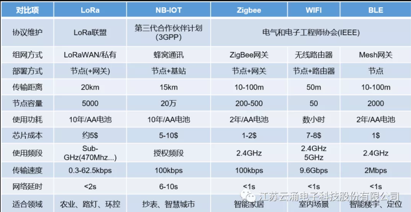 各無線通訊技術(shù)對(duì)比