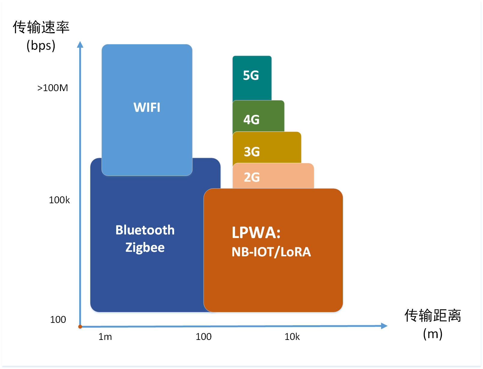 各無線通訊技術(shù)傳輸速率和傳輸距離對(duì)比