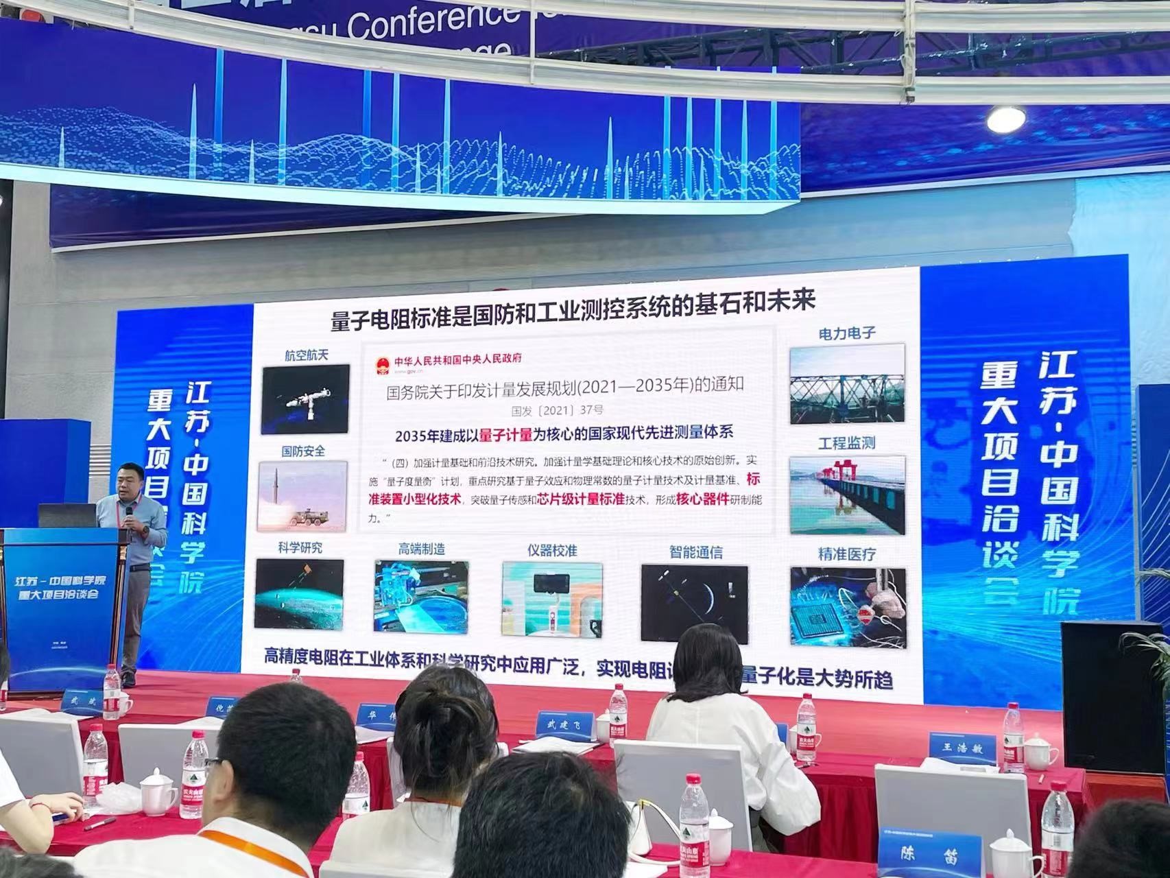 在江蘇——中國科學院重大項目洽談會的路演中,王浩敏研究員發(fā)表了題為《提供最精確量值的可移動量子電阻標準裝置》的演講,他表示量子電阻標準支撐了整個科學和工業(yè)測量參比體系,在電子信息、航空航天、醫(yī)療以及國防等領域有著廣泛的用途。量子電阻是可以直接測量且只與自然常數(shù)相關的宏觀電學物理量。目前,中、美、日等國家級計量實驗室均建成了量子霍爾電阻標準裝置(QHRS),并在進行推廣,我國也正在開展針對用于新一代量子電阻的芯片技術研發(fā)。QHRS的研制將帶來電學測量原理、方法和儀器形態(tài)的全面創(chuàng)新,并形成獨特的材料與設備產(chǎn)業(yè),從而對信息產(chǎn)業(yè)結構產(chǎn)生巨大影響。