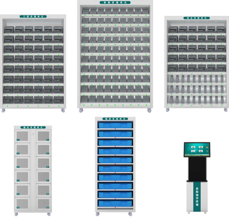 在設(shè)備方面,可提供單相存儲(chǔ)單位、輔材存儲(chǔ)單元、混合存儲(chǔ)單元、三相存儲(chǔ)單元以及箱表存儲(chǔ)單元等,根據(jù)庫(kù)房實(shí)際情況按需組合,存儲(chǔ)單元的多樣性,極大地滿足了現(xiàn)場(chǎng)空間的使用需求。而且結(jié)合智能操作終端的使用,一線業(yè)務(wù)人員在領(lǐng)用、存儲(chǔ)計(jì)量資產(chǎn)時(shí),只需在終端上點(diǎn)擊工單,相應(yīng)周轉(zhuǎn)柜儲(chǔ)位便會(huì)自動(dòng)點(diǎn)亮,并伴隨語(yǔ)音播報(bào),快速引導(dǎo)人員完成相關(guān)業(yè)務(wù)操作,極大提高了一線業(yè)務(wù)人員的工作效率。