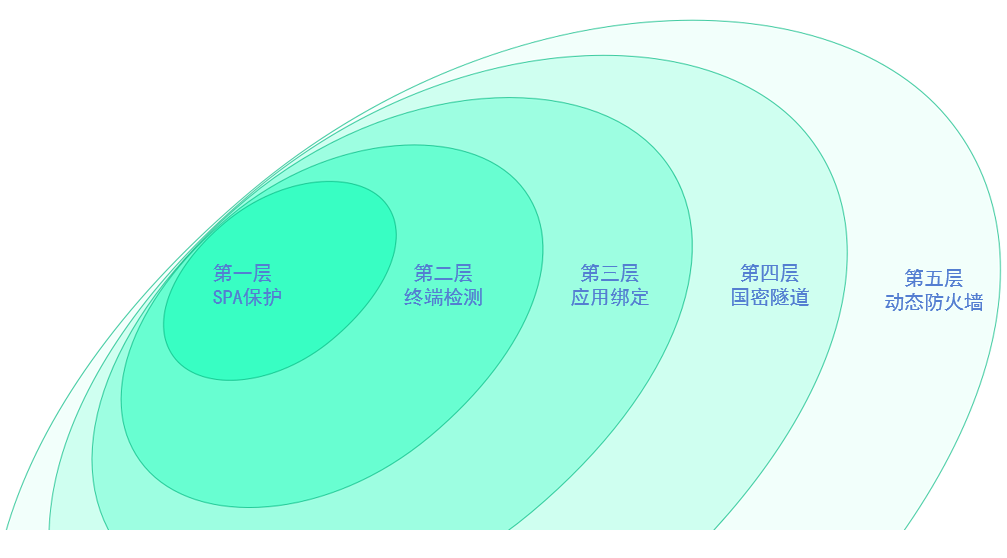 ? ? ? 首先,系統(tǒng)整體設(shè)計采用了零信任SDP架構(gòu),通過五層安全防護來實現(xiàn):