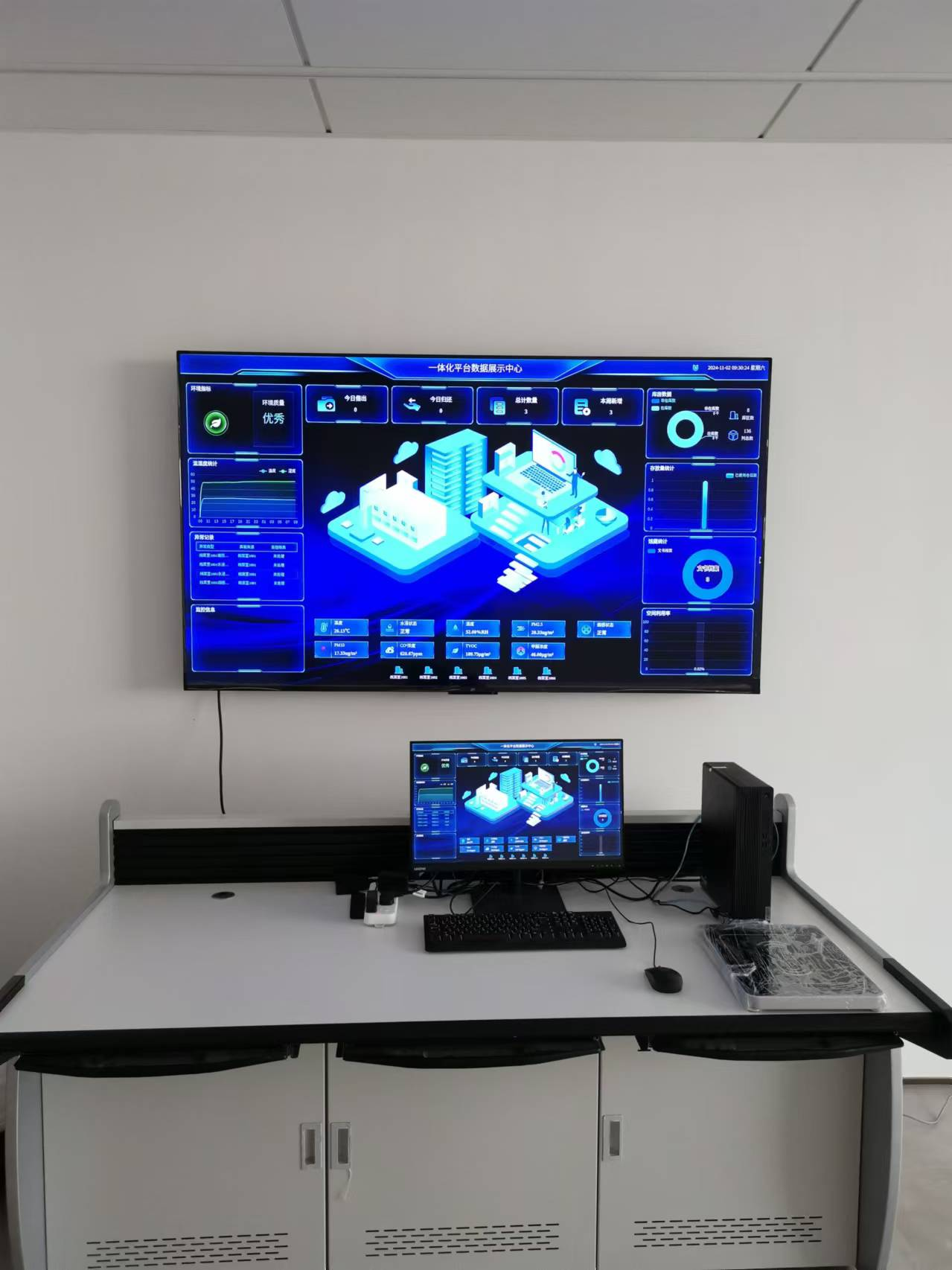 通過液晶顯示大屏來展示環(huán)境數據信息、檔案位置的引導信息、設備報警信息等。